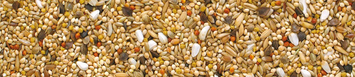 Yellow millet , Canary seeds, White Millet , Hulled oats, Japanese millet, Nectar Manitoba 2 mm, Safflower seeds, Buckwheat, Barley, Wheat, Hemp seeds, Red millet, Oyster shells, Flaxseed, Nigerseed.