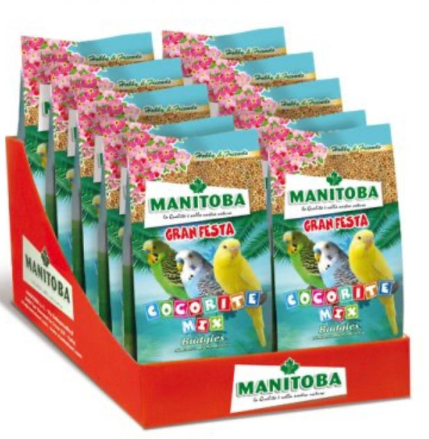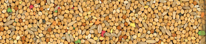 A complementary feed for budgies made with grains, seeds and, biscuit pieces.