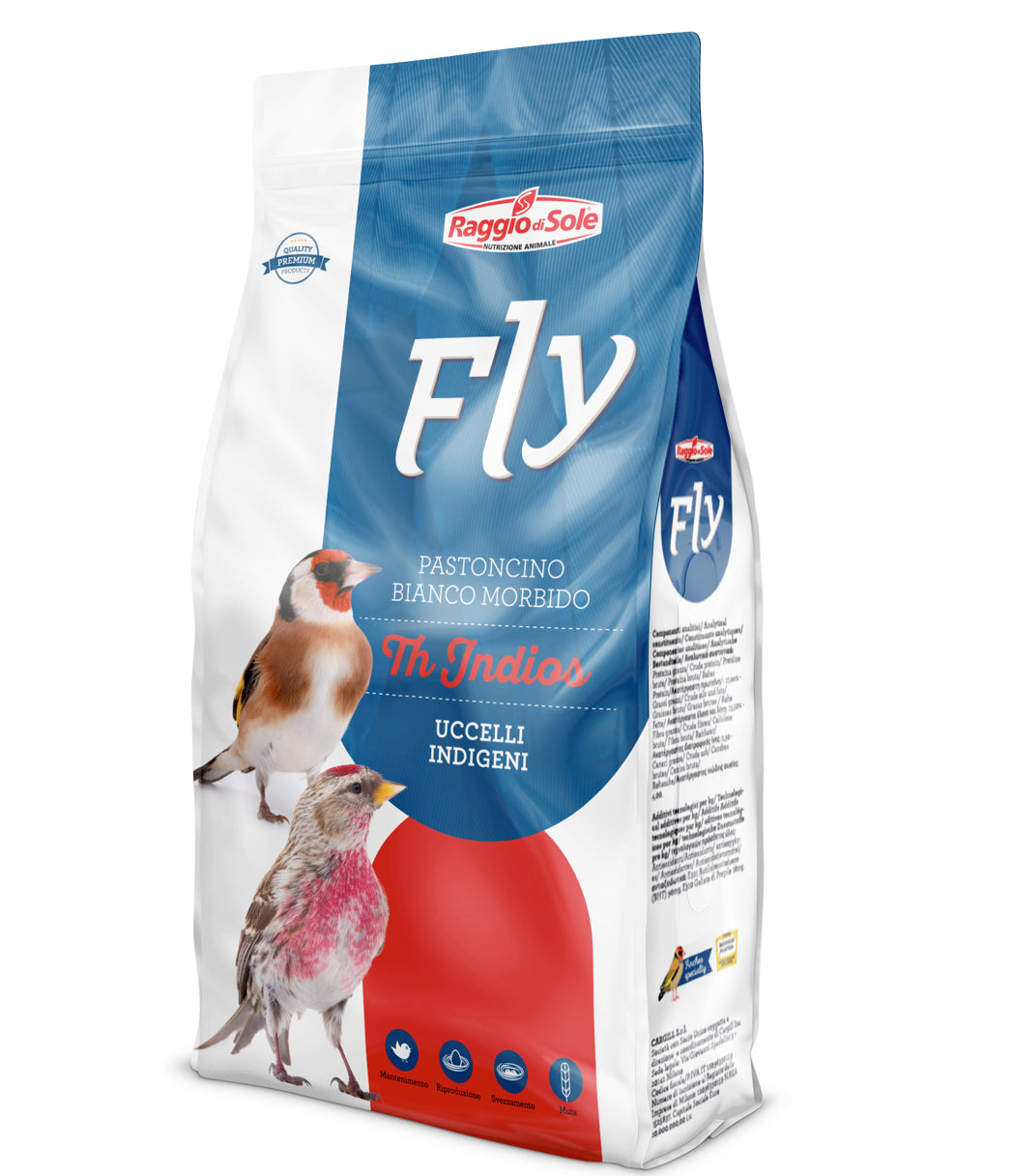 TH Indios of the line Fly Paté of Raggio di Sole is a soft white egg food suitable for all stages of life of Indigenous birds, Spinous European, South American and Carduelids. The excellent palatability allows its use even for difficult species.