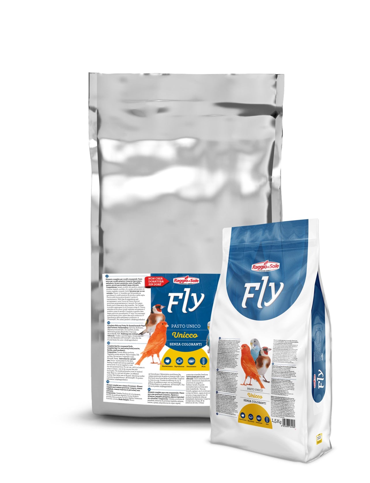 UNICCO – COMPLETELY COMPLETE is a complete feed without colorants for seed eating birds (lipochromic, melanin, shape and position, song canaries, finches, tropical finches, small parakeets). The product can be supplied in the dry form throughout the year (maintenance, breeding preparation, moulting) with the exception of the chick rearing period in which Unicco Extra represents the ideal product.